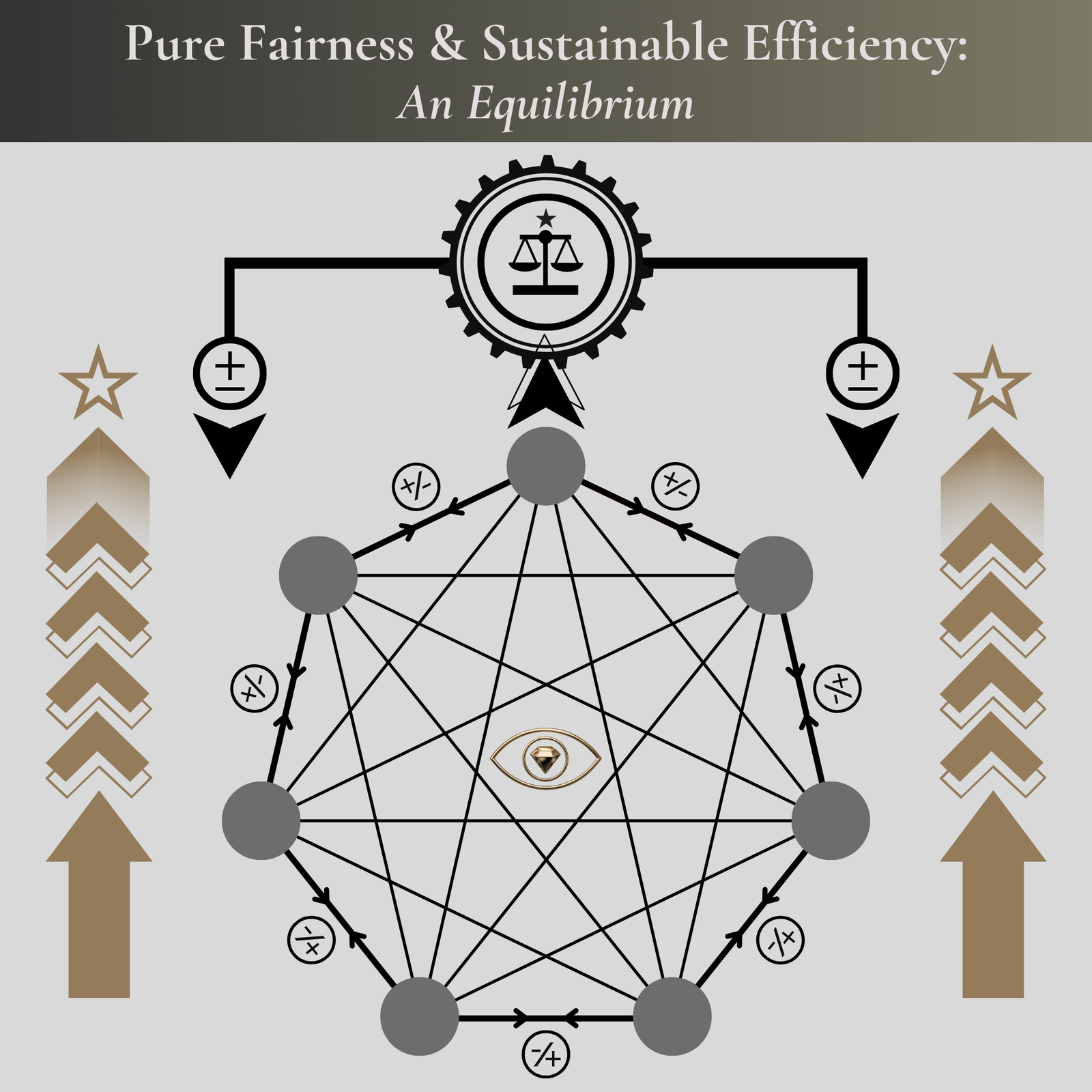 Wizdomkult upholds the guiding principle of pure fairness and sustainable efficiency, believing that an equilibrium between the two can and should be achieved for the collective prosperity of humanity.